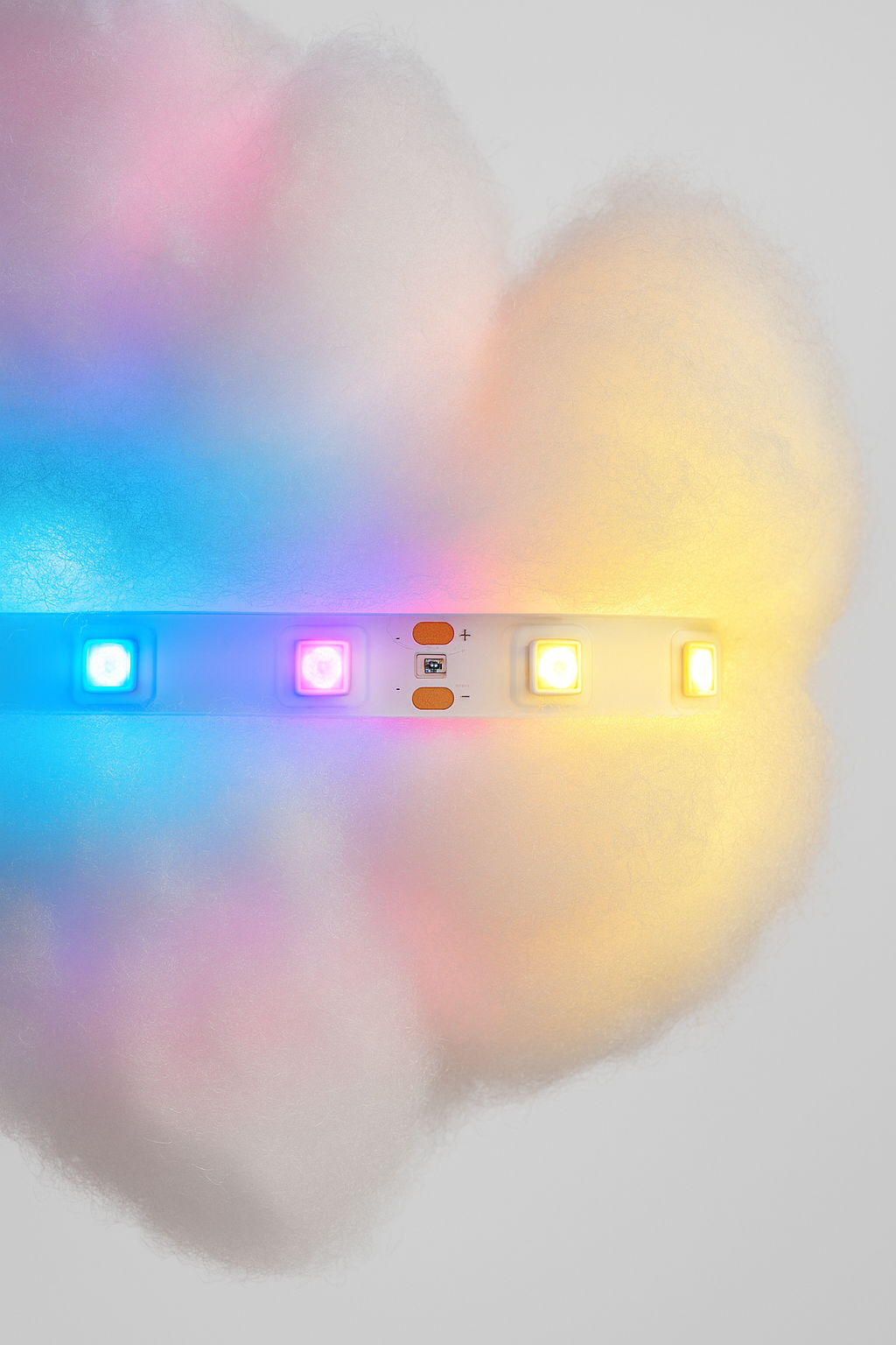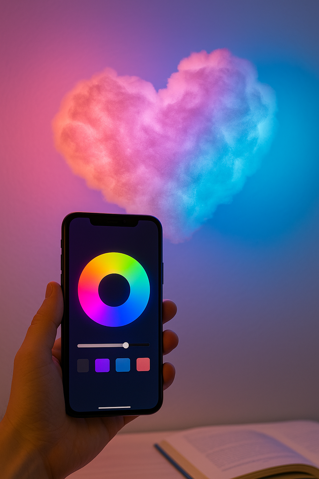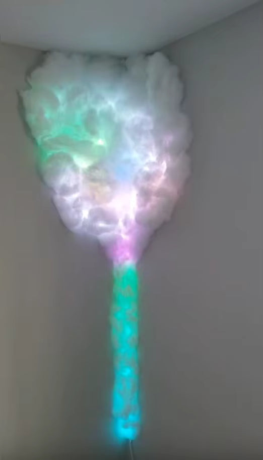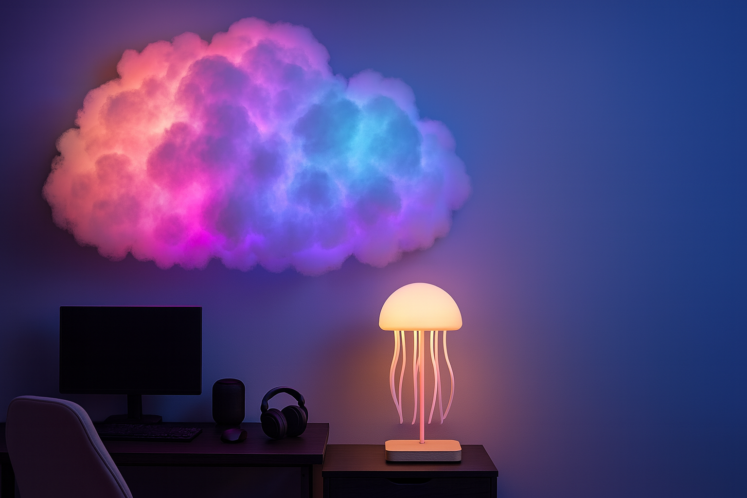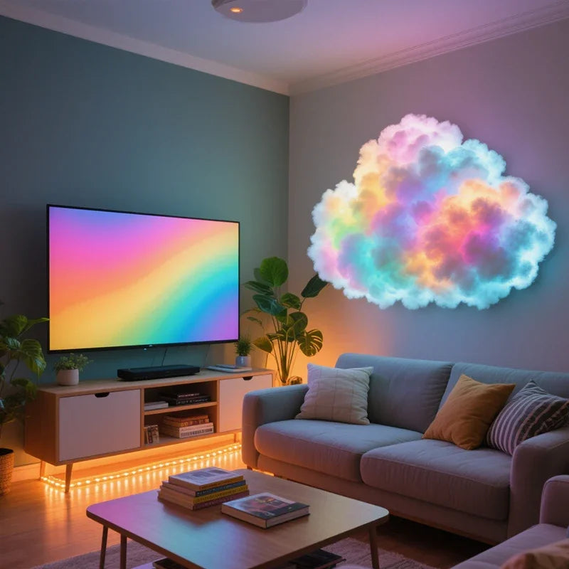 - Taśmy RGBIC układają kontur chmury; każdy segment może świecić innym odcieniem → powstają płynne gradienty i efekty ruchu.