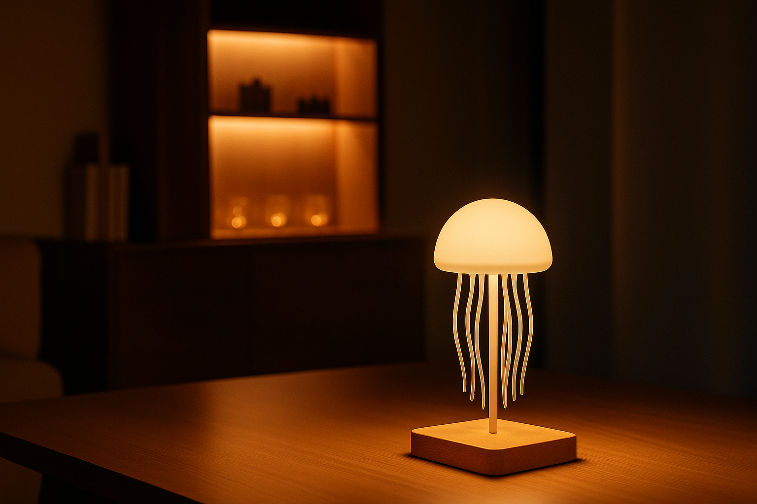 Meduza dodaje historii każdemu kątowi. Rozjaśnia stół, miękko pulsuje przy serialu, a na noc działa jak kołysząca lampka. Jedna rzecz i cały pokój dostaje własny klimat. 🛋️📖